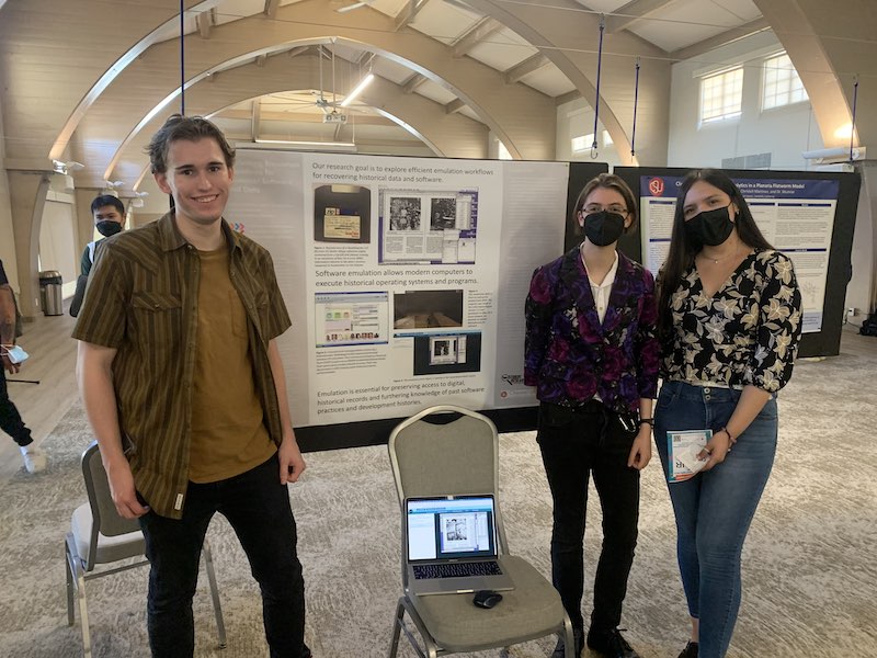 SHFT associates DesireƩ Caldera, Adam Larson, and Morgan McMurray presented their poster, "Evaluating Emulation Workflows for Historical Software and Data" at the Fall SURF showcase event. The students are planning on submitting this work to the Southern California Conference on Undergraduate Research (SCCUR) in the coming weeks.